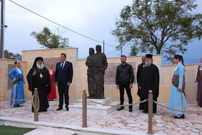 Προηγήθηκε Τρισάγιο το οποίο τέλεσαν ο Επίσκοπος Ρωγών Δωρόθεος και ο εφημέριος του Ιερού Ναού ΠΑΝΑΓΙΑ ΚΑΝΑΛΑ Συμεών Αδάκτυλος. Ο πρώτος ανέφερε ότι είναι το τρίτο Μνημείο που ευλογεί, ενώ ο δεύτερος προκάλεσε ιδιαίτερη συγκίνηση αναφερόμενος στα δεινά που υπέστησαν οι Έλληνες του Πόντου, τα οποία γνωρίζει λόγω της Ποντιακής του καταγωγής.