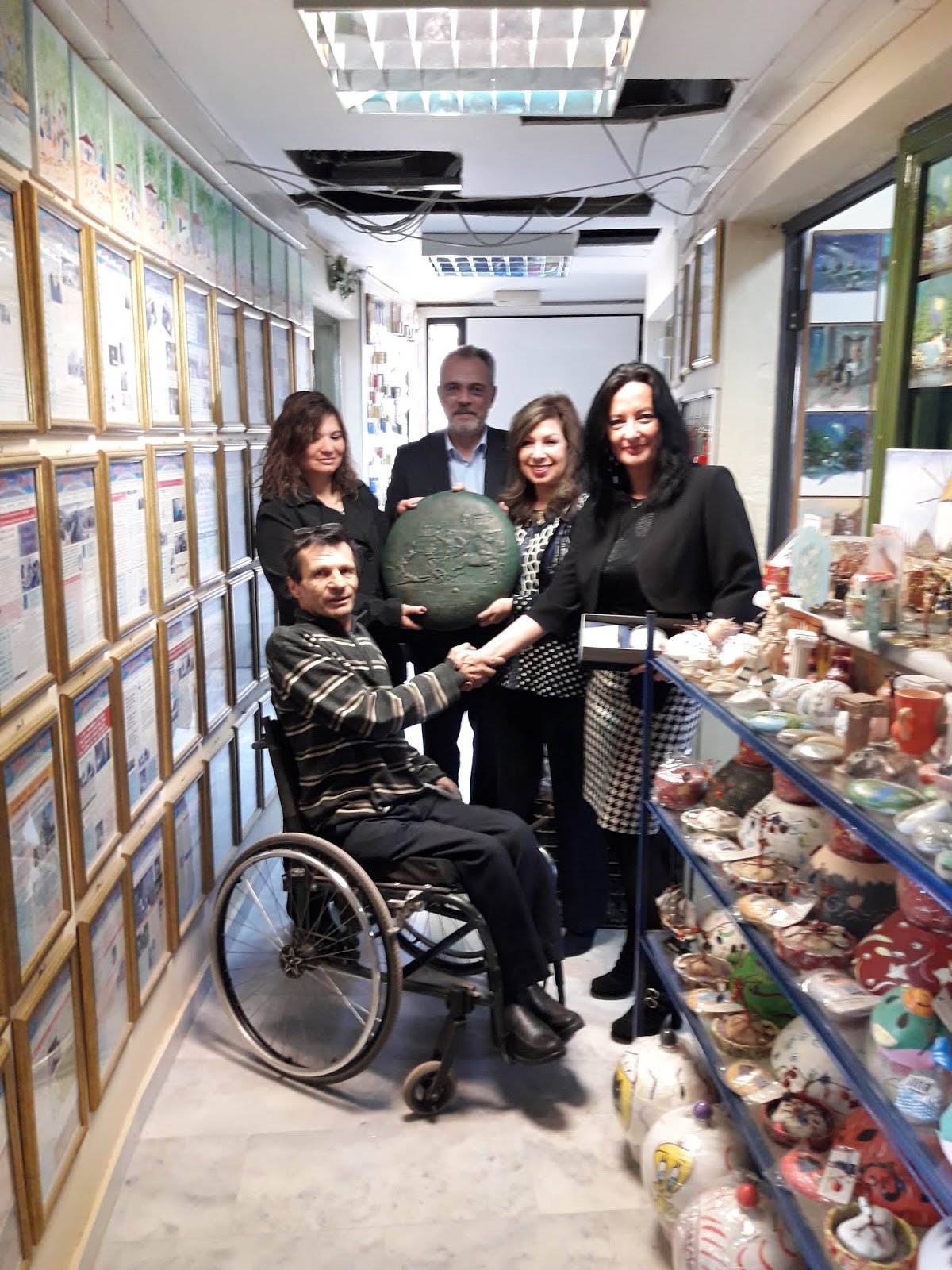 Συνάντηση πραγματοποιήθηκε την Τρίτη 2/4/2019 στο Κέντρο Εργασίας Αναπήρων “Συνεργασία – Δημιουργία”, μεταξύ του Προέδρου του Κοινωνικού Συνεταιρισμού Ένταξης Ευάλωτων Ομάδων Γεώργιο Ρεθυμιωτάκη και των υπευθύνων Δημοσίων Σχέσεων, Μάρκετινγκ και Πολιτισμού του Διεθνή Αερολιμένα Αθηνών “Ελευθέριος Βενιζέλος”. Στη συνάντηση συμμετείχαν, η κυρία Ιωάννα Παπαδοπούλου, Διευθύντρια Επικοινωνίας και Μάρκετινγκ, η κυρία Χαρά Μητσοτάκη, Τομεάρχης Δημοσίων Σχέσεων και Πολιτισμού και ο Απόστολος Κονταξής, Διευθυντής Μάρκετινγκ, Επιβατών και Επιχειρήσεων. Στην εποικοδομητική συζήτηση που πραγματοποιήθηκε, με ενθουσιασμό από κοινού αποφάσισαν την προβολή της προσπάθειας των Ατόμων με Αναπηρία με κάθε τρόπο και προς κάθε κατεύθυνση, ξεκινώντας με Εορταστικό Bazaar Αγάπης το Πάσχα, στο Αεροδρόμιο Ελ. Βενιζέλος. Τα δώρα που ανταλλάξαμε είναι συμβολικά και αποτελούν ορόσημο στην αρχή της συνεργασίας μας. Όλοι μαζί μπορούμε να φτιάξουμε ένα κόσμο καλύτερο, συνεργαζόμενοι για να δείξουμε τι μπορούμε και όχι τι δεν μπορούμε να κάνουμε. Το Δ.Σ. του Κέντρου μας και τα μέλη του ευχαριστούν τους εκπροσώπους του Διεθνή Αερολιμένα Αθηνών που μας αποδεικνύουν ότι οι μεγάλοι οργανισμοί και η Εταιρική Κοινωνική Ευθύνη δεν εκφράζεται με την τσέπη αλλά με την ψυχή, την αγάπη, τον εθελοντισμό και την προσφορά όλων μας στο κοινωνικό σύνολο.