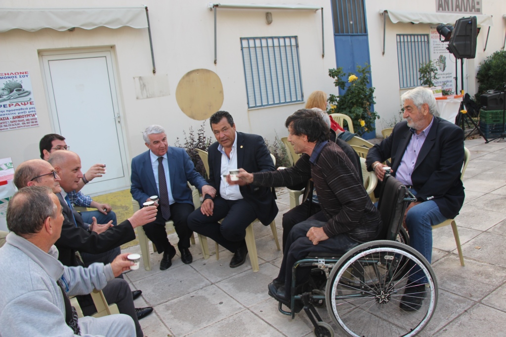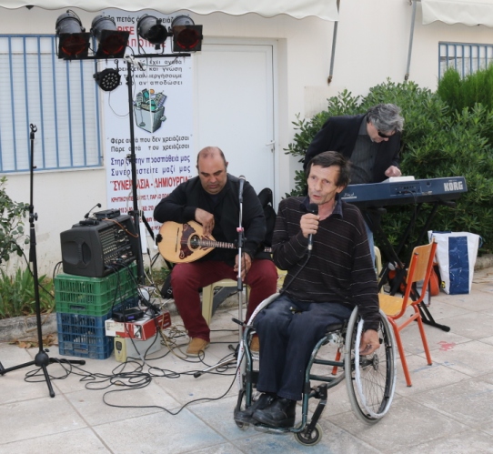 Καλλιτεχνικές προεκτάσεις για καλό σκοπό. Χορός, τραγούδι και διασκέδαση για όλους με κοινωνικό και όχι προεκλογικό χαρακτήρα.. Ο Πρόεδρος του ΚΕΑ Γ. Ρεθυμιωτάκης αφού καλωσόρισε τους καλεσμένους αναφέρθηκε σε θέματα συνεργασίας και εργασίας των Ατόμων που ανήκουν στις ευπαθείς κατηγορίες, αναζητώντας τρόπους για την προώθησή τους στην αγορά εργασίας. “Κάποτε” είπε ο Πρόεδρος του ΚΕΑ: “Τα Άτομα με Αναπηρία τα πέταγαν στον Καιάδα, σήμερα μας χρησιμοποιούν για να κάνουν τη δουλειά τους. Αύριο κανένας δεν ξέρει τι θα γίνει. Επειδή η εργασία όπως έχουμε πει κατ’ επανάληψη είναι το καλύτερο φάρμακο που γιατρεύει όλες τις αδυναμίες του κόσμου, πρέπει με οποιονδήποτε τρόπο να υπάρχει εργασία για όλους. και αναφέρθηκε με παραδείγματα εταιρειών και ανθρώπων που προσφέρουν αυτό ακριβώς που ζητάμε. Η Μελισσοκομική Εταιρεία ANEL Παντελάκης και η Ναυτιλιακή Εταιρεία EVAL Βαλλιανάτος, αποτελούν παράδειγμα προς μίμηση εταιρικής κοινωνικής ευθύνης των επιχειρήσεων του ΒΙΟ.ΠΑ Άνω Λιοσίων. Δεν υποτιμούν τις δυνατότητές μας και με βάση την Ε.Κ.Ε. μας προσφέρουν ό,τι καλύτερο θα μπορούσαν. (δουλειά στο χώρο μας, αγάπη και συνεργασία στις προσπάθειές μας). Αν όλοι οι επιχειρηματίες έκαναν κάτι παρόμοιο θα είχαμε εξαφανίσει την ανικανότητα που νομίζουν ορισμένοι ότι κουβαλάμε”, λέει ο Πρόεδρος του ΚΕΑ. Ο Πρόεδρος του Κ.Ε.Α. Γ. Ρεθυμιωτάκης ευχαρίστησε όλους τους παρευρισκόμενους εξηγώντας τους ότι η γιορτή δεν είναι πολιτικού αλλά κοινωνικού χαρακτήρα και απευθυνόμενος στους εθελοντές που συνεργάζονται και βοηθούν τις προσπάθειές μας, ευχαρίστησε ιδιαίτερα την Αναστασία Κοντού και την ομάδα της που ήταν κοντά μας.