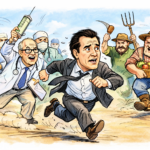 Τώρα το ποιος κυνηγάει ποιον είναι μια πονεμένη ιστορία… Φοβάται ο Γιάννης το θεριό ή το θεριό τον Γιάννη! Από αρχαιοτάτων χρόνων, οι Βλάχοι είχαν ξεκάθαρους ρόλους. Με το τσαρούχι στο πόδι και το μπαστούνι στο χέρι, το κυνήγι ήταν ζήτημα επιβίωσης. Κυνηγούσαν τους λύκους για να σώσουν τα πρόβατα και τους κλέφτες για να μην τους πάρουν το γάλα. Σιγά- σιγά, οι λύκοι αποσύρθηκαν στα βουνά και οι κλέφτες έγιναν πιο εκλεπτυσμένοι. Το γάλα έγινε τυρί που μούχλιασε και έγινε ροκ- φόρ, το οποίο σερβίρεται σε ακριβά πιάτα. Ροκφόρ και κασέρι μαζί έγιναν γκουρμέ λιχουδιές. Όλοι σήμερα τρέχουν για το τυρί χωρίς να τους φοβίζει τίποτα. Ποιος πρέπει να φοβάται ποιον σήμερα; Ο κακός λύκος δεν είναι πια εδώ. Οι Βλάχοι όμως, αμετανόητοι και επικίνδυνοι, συνεχίζουν να κυνηγούν τον λύκο για να μην τους φάει το τυρί, γιατί το «θεριό» της καθημερινότητας κρύβεται στα σούπερ μάρκετ. Και ο Γιάννης; Ο Γιάννης μάλλον αναπολεί την εποχή που το μόνο που χρειαζόταν για να προστατέψει το βιός του ήταν ένα γερό μπαστούνι και η καθαρή ματιά του βουνού. Γ.Ρ